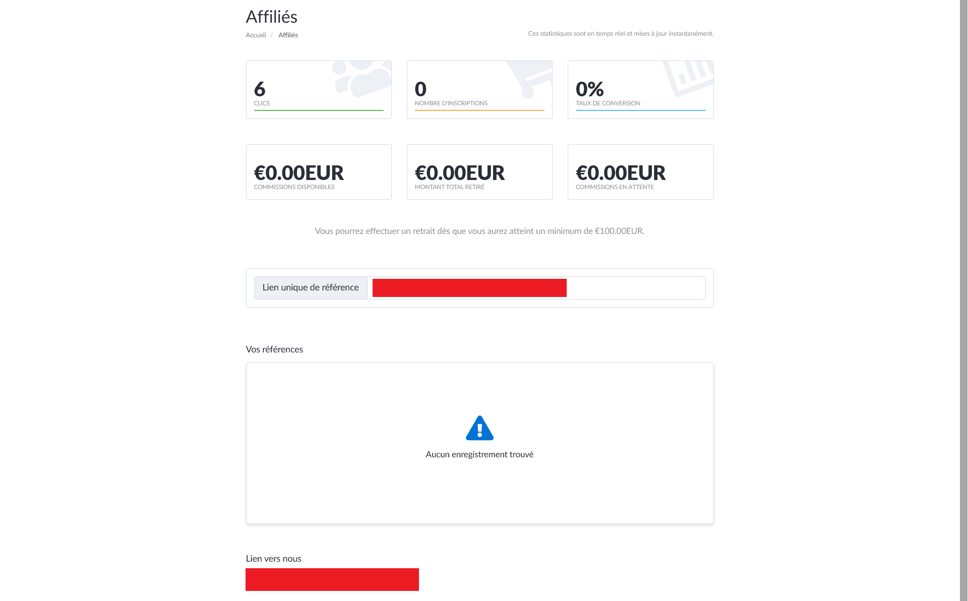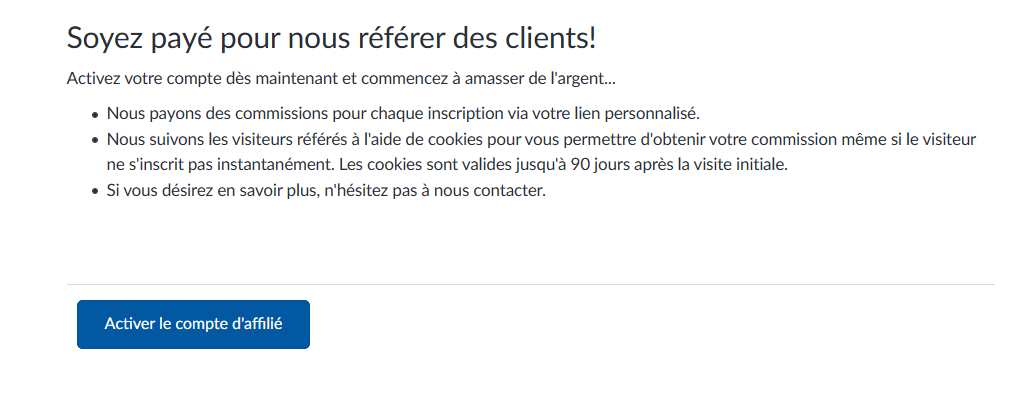Pour obtenir son lien d'affilié, connectez-vous à votre espace client puis rendez-vous dans Mes factures -> Affilié